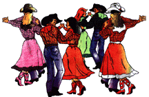 Da Frauen "Mangelware" waren, tanzten in der Anfangszeit nur die Männer. Später wurden dann die traditionellen Tänze (die sie von den Einwanderern immer wieder einmal gesehen hatten) von ihnen übernommen und ihrem Country Western Stil angepaßt. Diese Tänze sind gekennzeichnet durch einfache Schritte und das Country Flair, das die Kultur jener Zeit widerspiegelt.